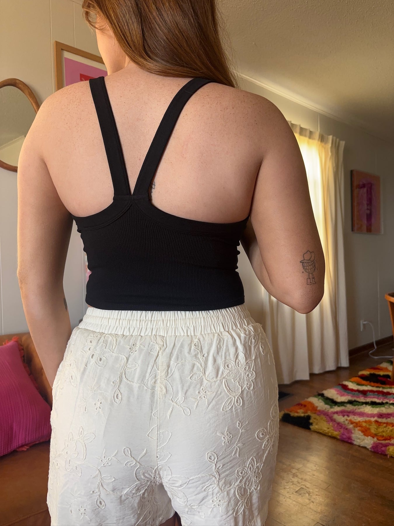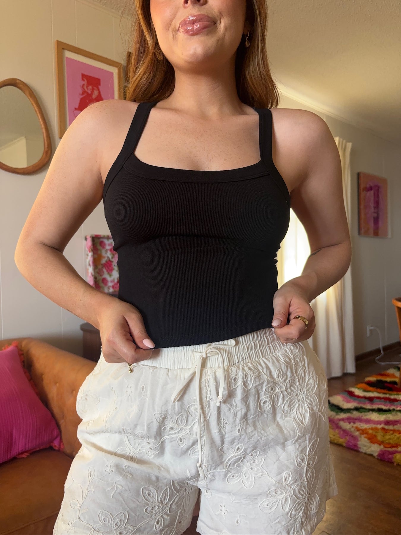 Designed to hug you in all the right places, this fitted ribbed knit tank features a compressive feel that smooths and flatters your silhouette. The racerback cut adds a sporty, elevated edge while keeping it effortlessly wearable. Soft yet supportive, it’s the perfect go-to whether you’re dressing it up with denim and heels or keeping it casual with shorts and sneakers. A true staple you’ll style on repeat.