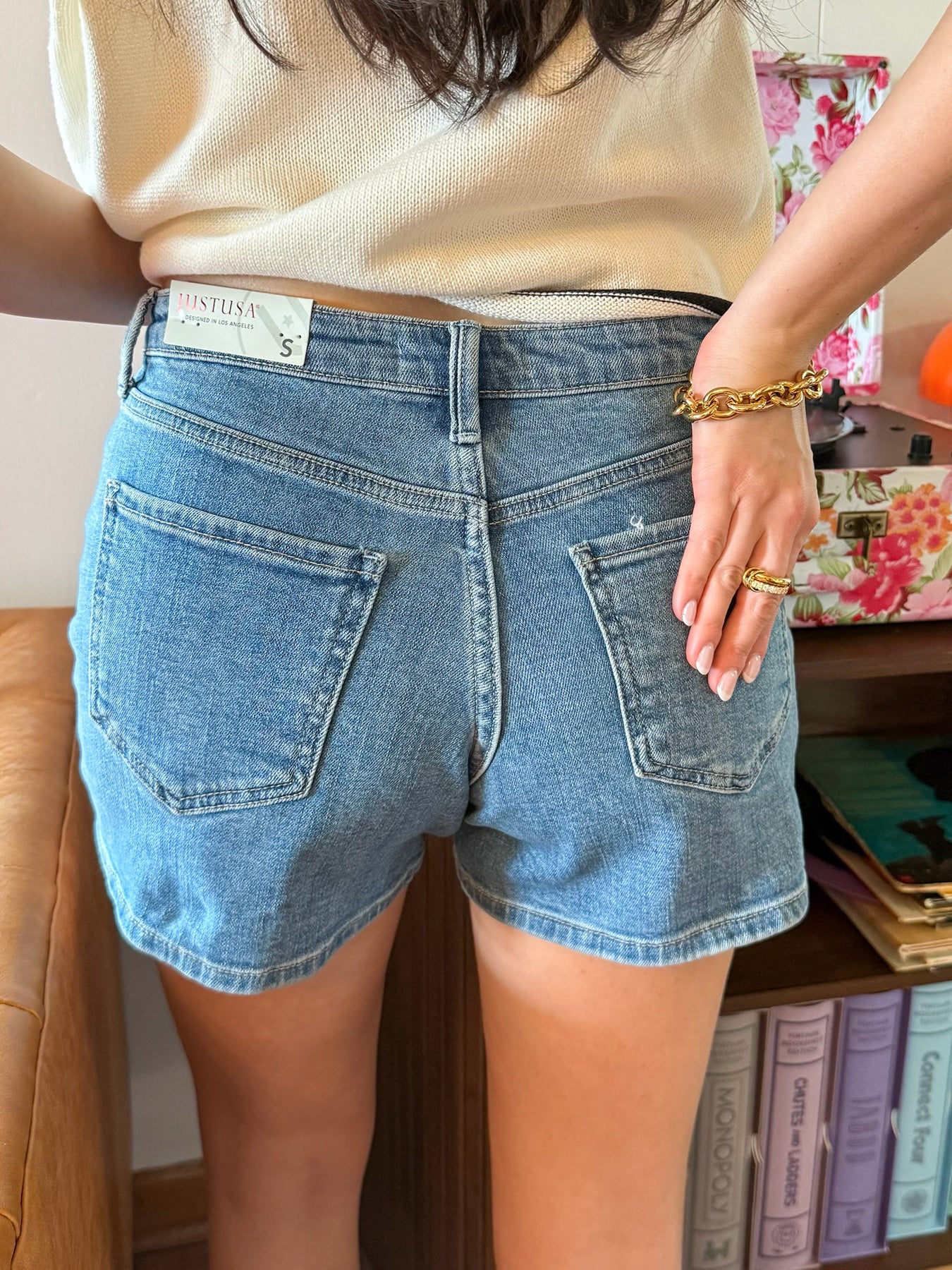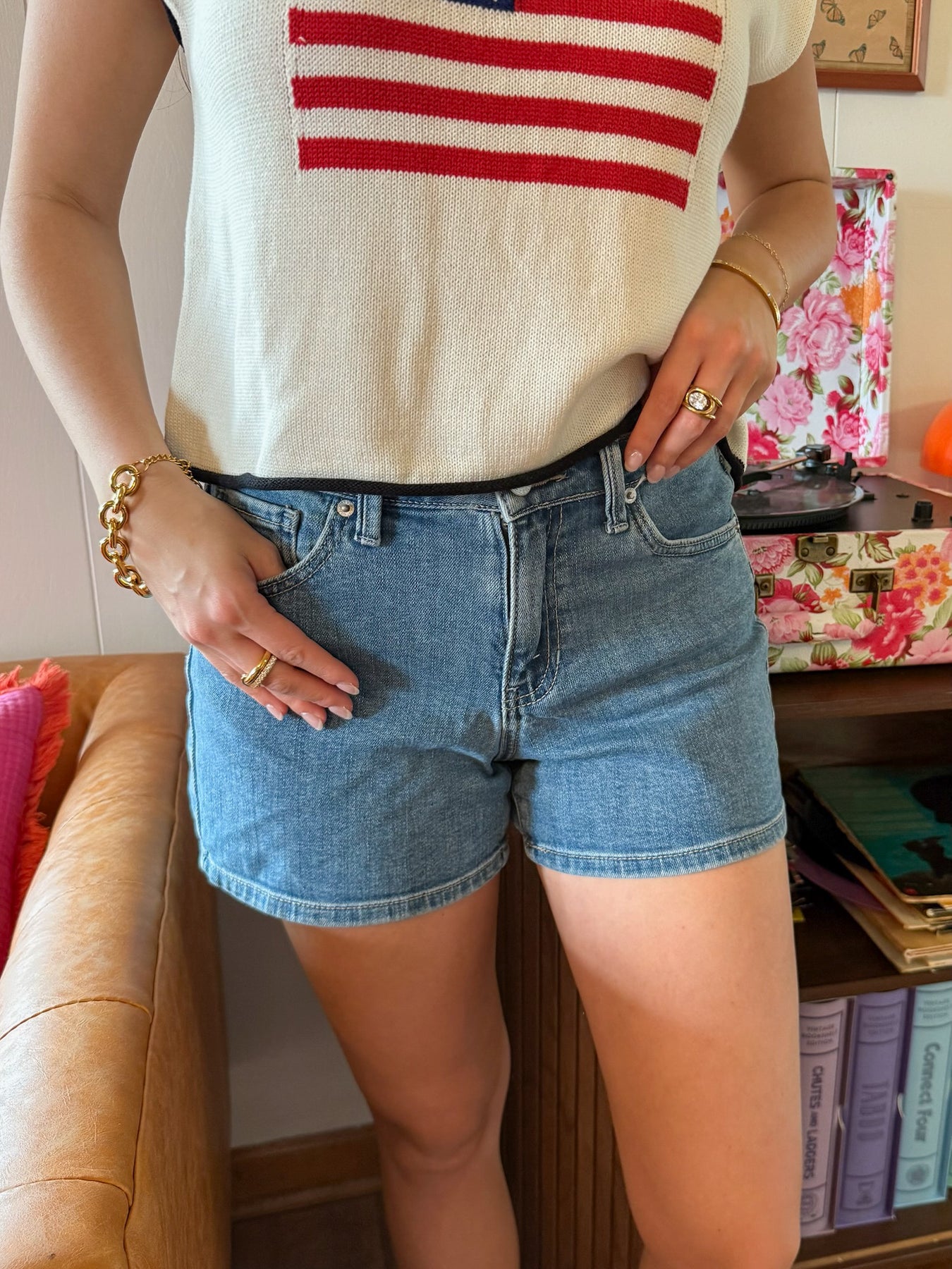 These classic medium wash denim shorts are the perfect everyday essential. Featuring a comfortable mid-rise fit and moderate stretch for easy movement, they offer a flattering silhouette without any distressing, keeping the look clean and versatile. Pair them with tees, tanks, or cropped tops for effortless warm-weather style.