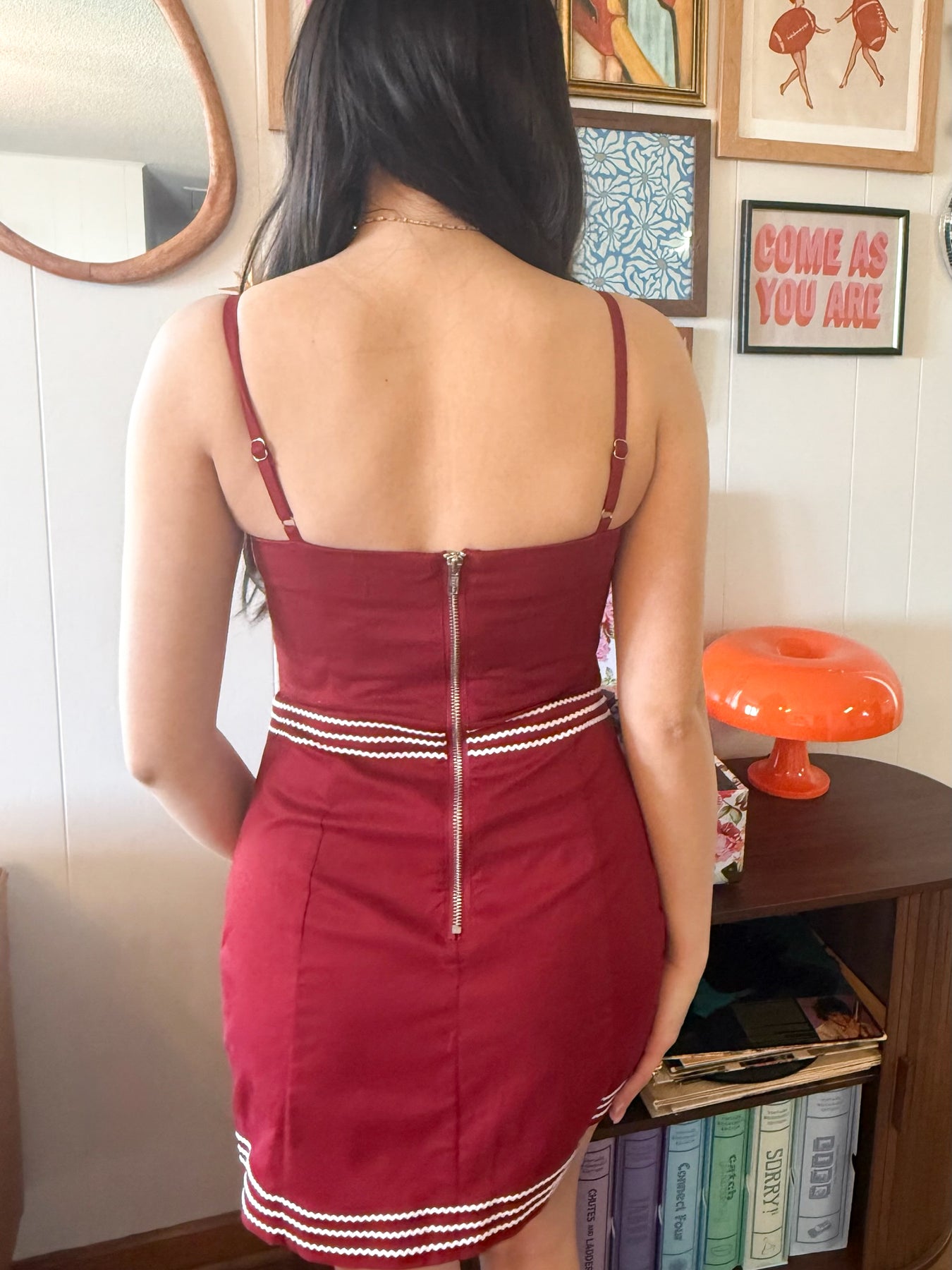 Crimson Contrast Stitch Mini Dress