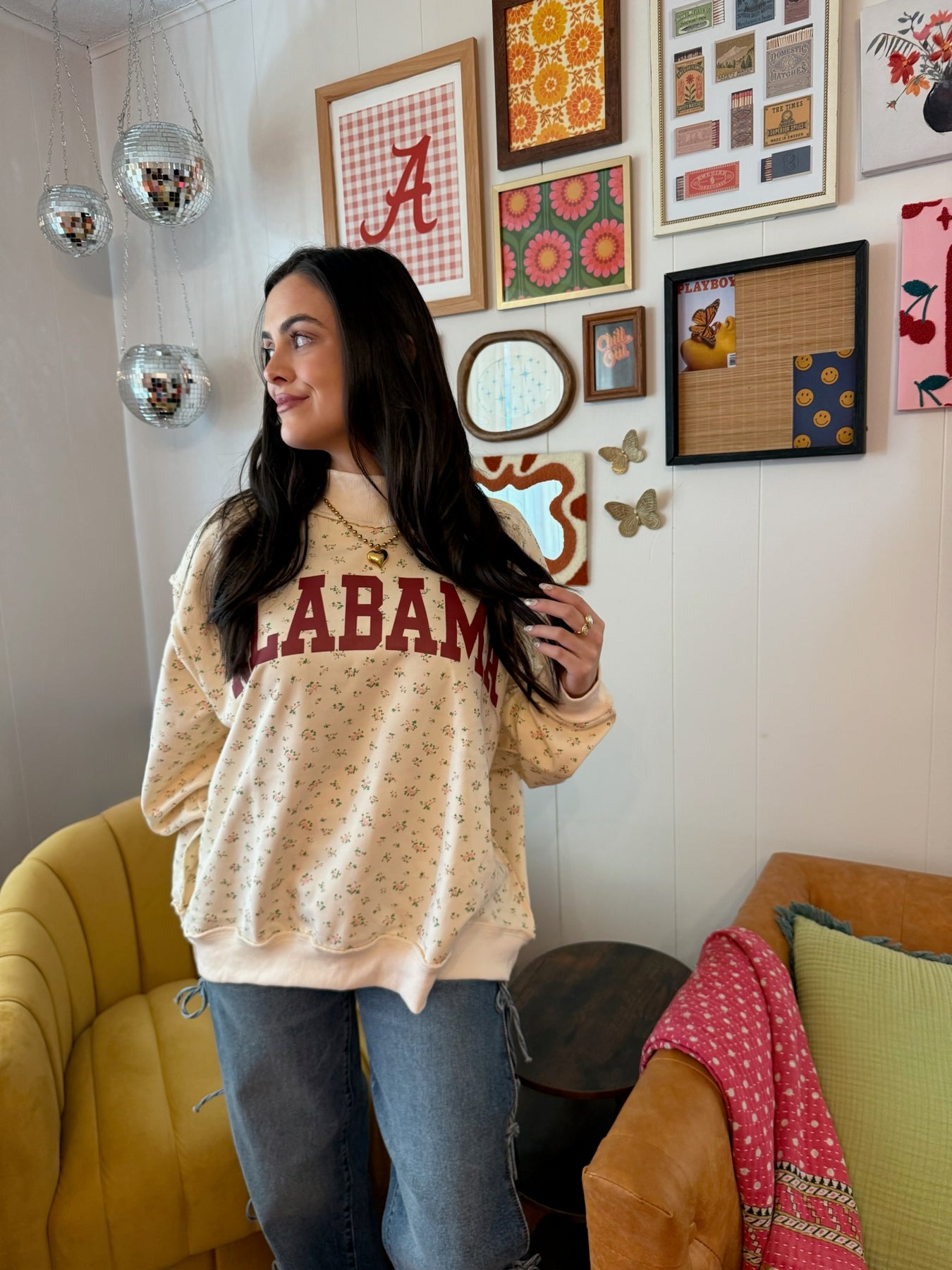 Alabama Floral Reversible Mock Neck Sweatshirt-130 - TOPS - SWEATERS/SWEATSHIRTS-BUCKETLIST-[option4]-[option5]-[option6]-Leather & Lace Boutique Shop