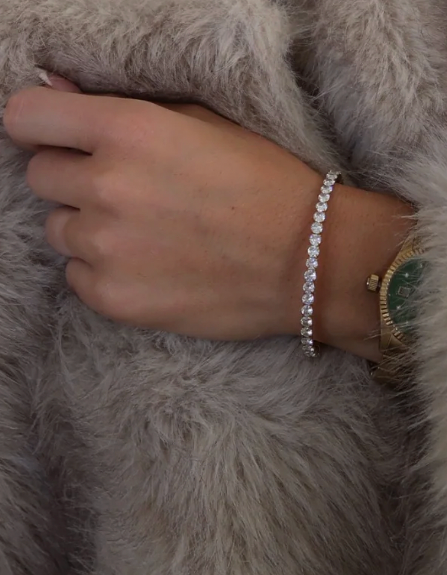Add a sparkling touch to your look with this stretchy gold tennis bracelet. Its shiny rhinestones catch the light beautifully, making it perfect to wear solo or stacked for extra glam. Comfortable and flexible, it’s a playful way to brighten any outfit!