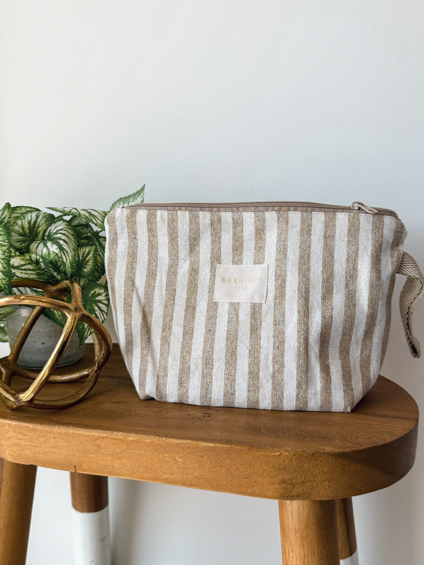 Bright, functional, and just a little bit sparkly—this large toiletry pouch is made to go wherever you do. Designed in a mustard and ecru striped fabric with subtle Lurex threads, it adds an elevated touch to even your everyday essentials.