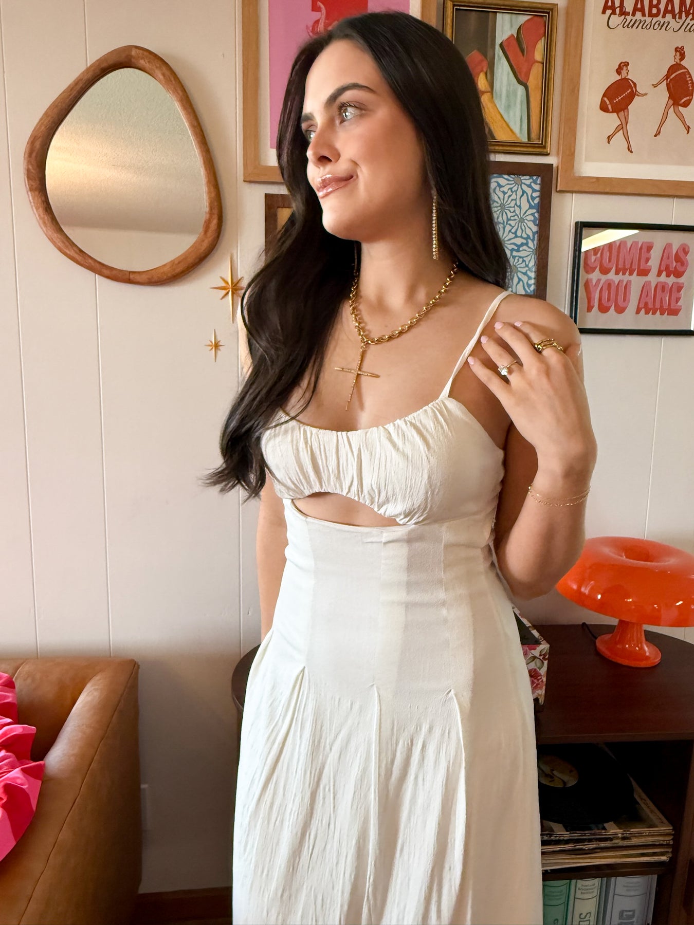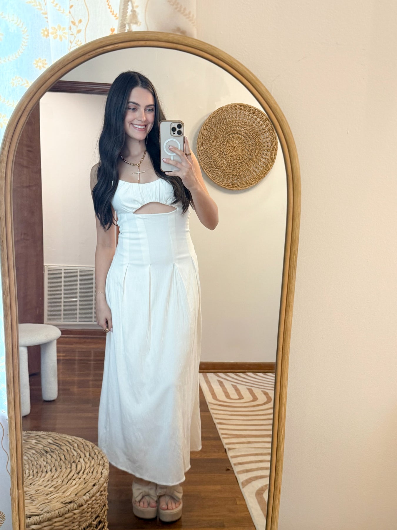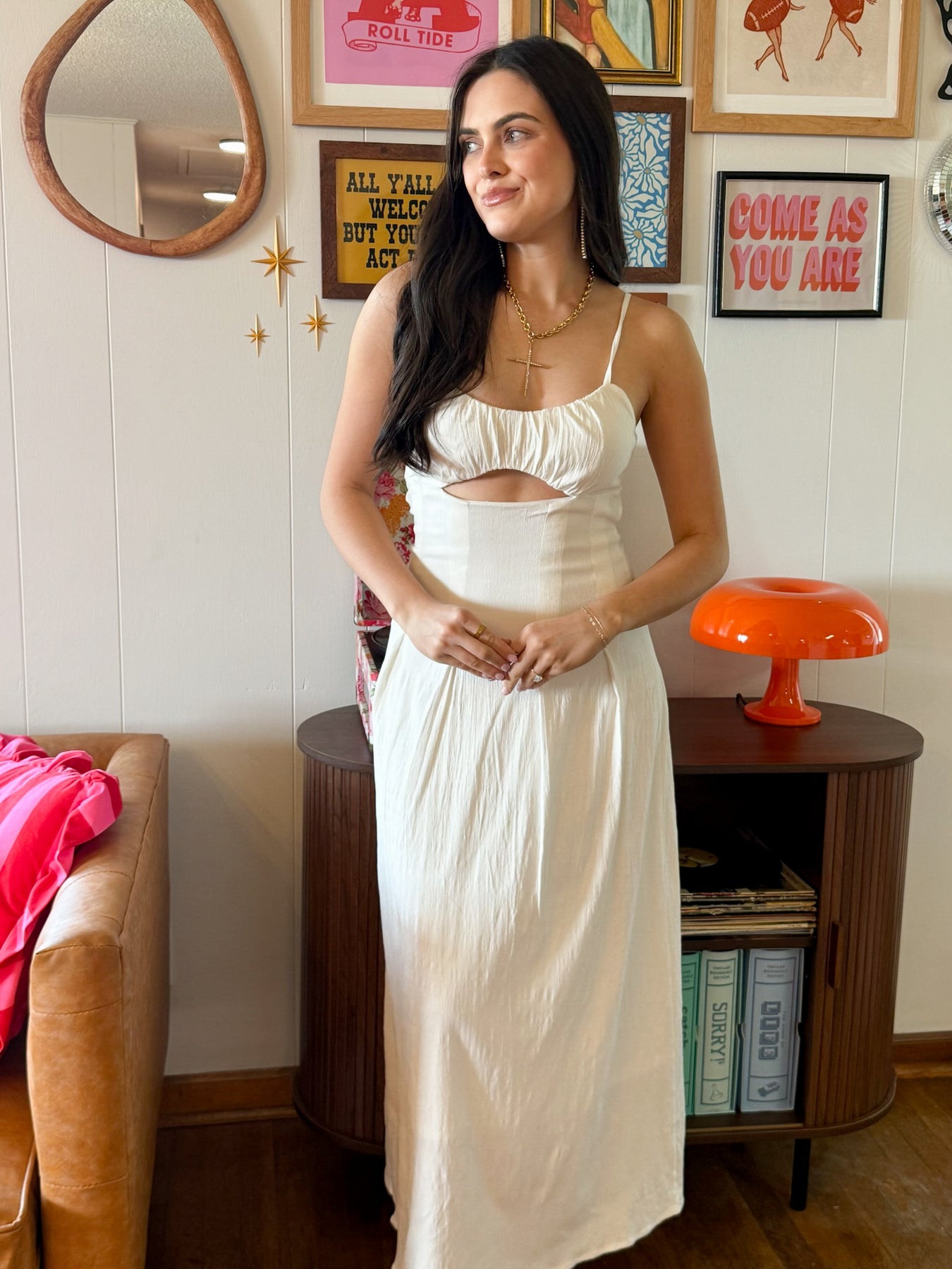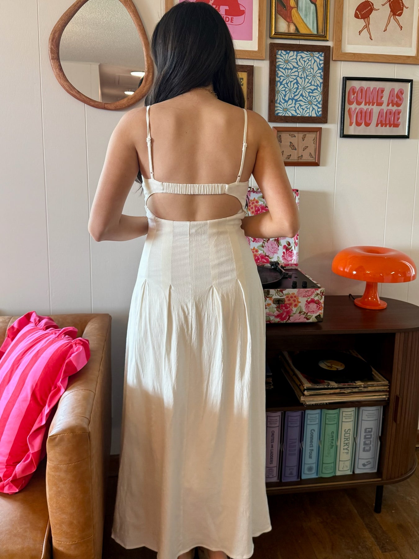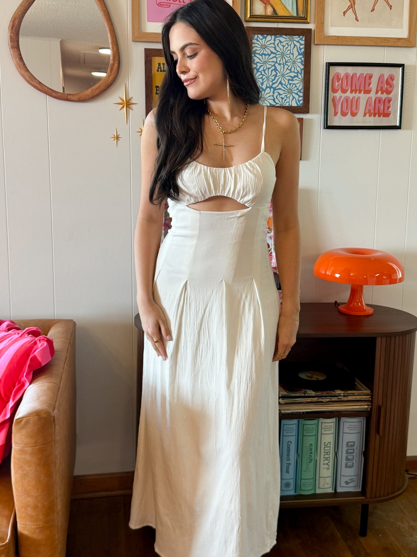 Ruched Cutout Midi Dress- Ivory