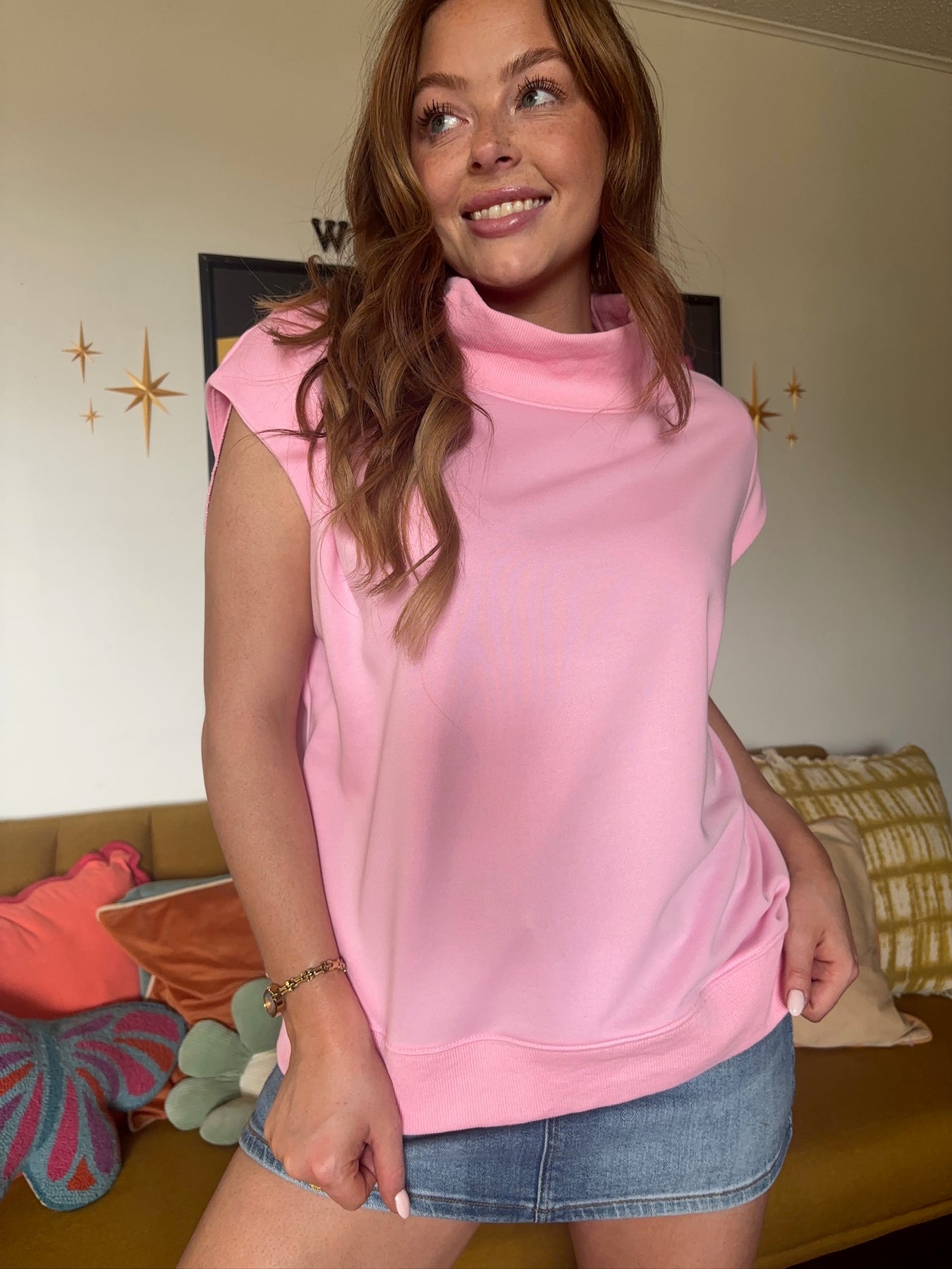 Sleeveless Mock Neck Top- Pink-100 - TOPS - SHORT SLEEVE/SLEEVELESS-DAY + MOON-[option4]-[option5]-[option6]-Leather & Lace Boutique Shop